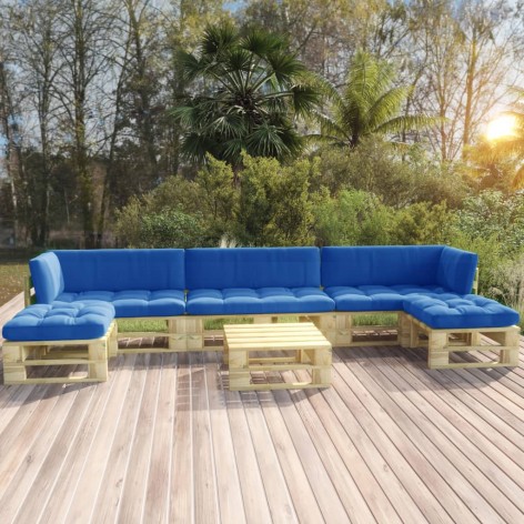 Set di Divani su Pallet 6 pz e Cuscini in Pino Impregnato Verde