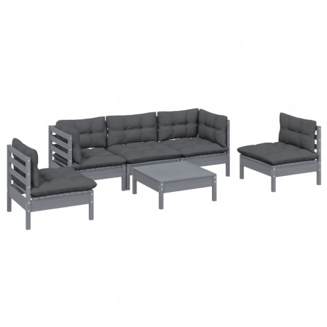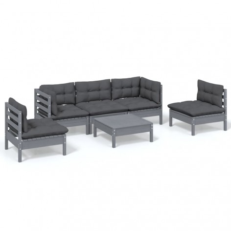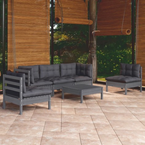 Set Divani da Giardino 6 pz con Cuscini Legno Massello di Pino