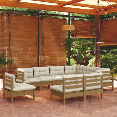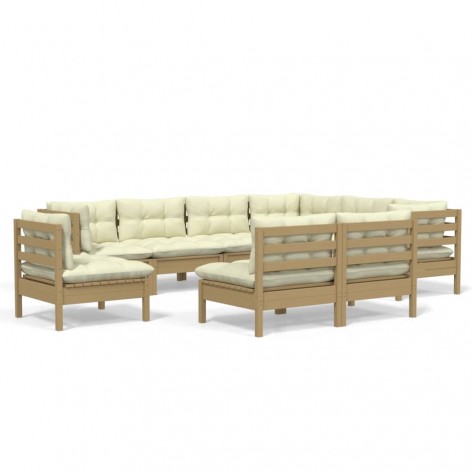 Set Divani da Giardino 9 pz con Cuscini Miele in Legno di Pino