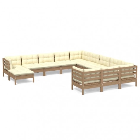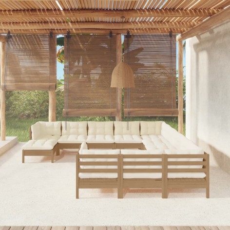 Set Divani da Giardino 12 pz con Cuscini Miele Legno di Pino