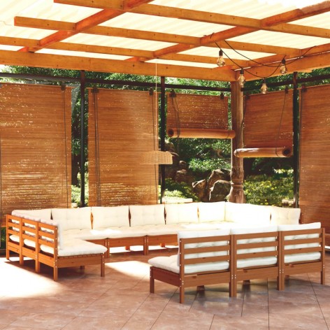 Set Divani da Giardino 13 pz con Cuscini Miele Legno di Pino