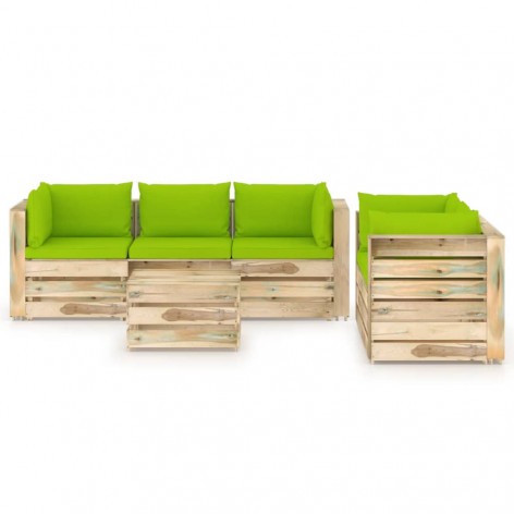 Set Divani da Giardino con Cuscini 6 pz Legno Impregnato Verde