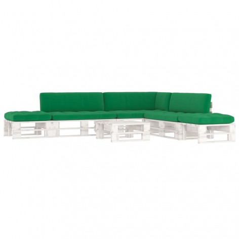 Set di Divani su Pallet 6pz e Cuscini in Pino Impregnato Bianco
