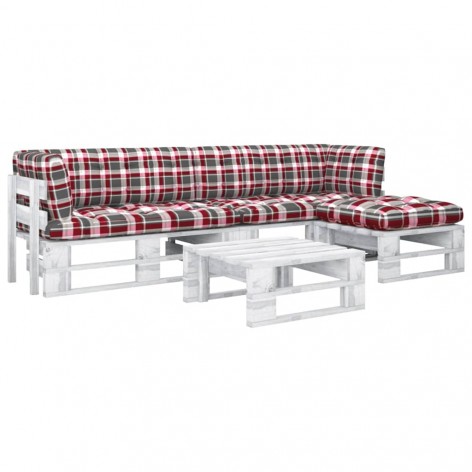 Set Divani a Pallet e Cuscini 4 pz in Pino Impregnato Bianco