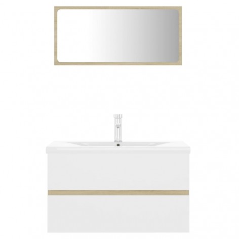 Set Mobili da Bagno Bianco e Rovere Sonoma in Truciolato