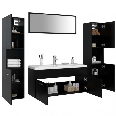Set Mobili da Bagno Nero in Truciolato