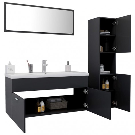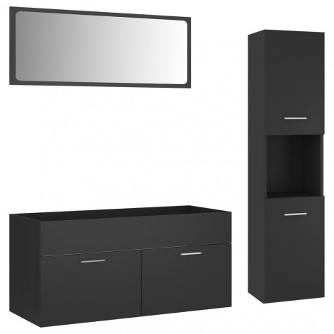 Il set di mobili è composto da un mobile sottolavabo, un armadietto alto e uno specchio. L'elegante mobile sottolavabo ha 1 ripiano e la parte superiore è ideale per poggiarvi il lavandino. Il mobile alto ha 5 scomparti e 2 ante e offre ampio spazio per riporre gli oggetti nel bagno. Lo specchio aggiunge un tocco di eleganza all'arredamento. Questo set da bagno è facile da pulire con un panno umido.