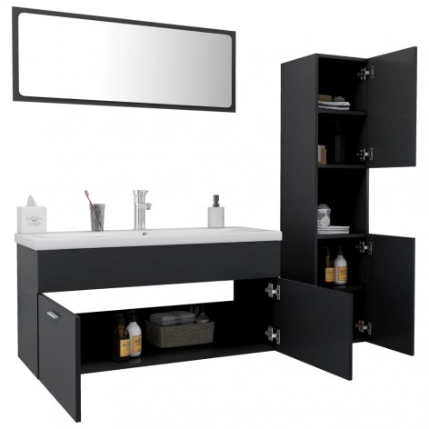 Il set di mobili è composto da un mobile sottolavabo con lavabo, un mobile alto e uno specchio. L'elegante mobile sottolavabo ha 1 scomparto e si adatta perfettamente sotto il lavandino, rendendo il vostro bagno molto comodo. Realizzato in ceramica, il lavabo può servire non solo come recipiente per l'uso quotidiano, ma anche come ornamento nel vostro spazio abitativo. Grazie al suo design di tendenza e contemporaneo, questo lavabo si adatterà sicuramente a qualsiasi arredamento. È inoltre dotato di un troppopieno per far defluire l'acqua quando diventa troppo pieno. Il mobile alto presenta un totale di 5 scomparti e 2 ante, offrendo ampio spazio per riporre gli oggetti nel bagno. Lo specchio aggiunge anche un aspetto eccellente al vostro arredamento. Inoltre, questo set da bagno è facile da pulire con un panno umido.