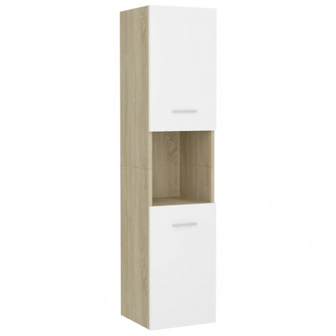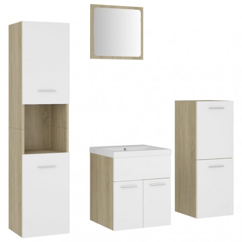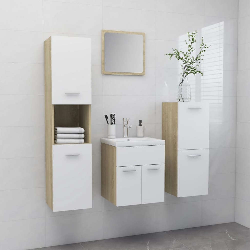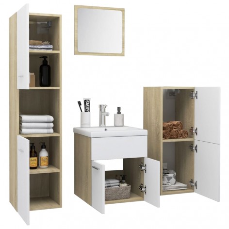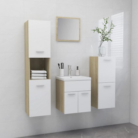 Set Mobili da Bagno Bianco e Rovere Sonoma in Truciolato
