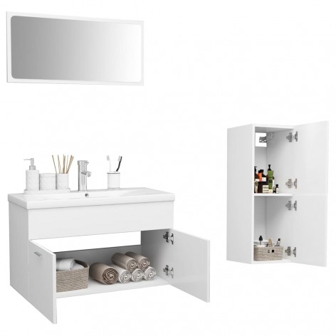 Il set di mobili è composto da un mobile sottolavabo con lavabo, un mobile basso e uno specchio. L'elegante mobile sottolavabo ha 1 scomparto e si adatta perfettamente sotto il lavandino, rendendo il vostro bagno molto comodo. Realizzato in ceramica, il lavabo può servire non solo come recipiente per l'uso quotidiano, ma anche come ornamento nel vostro spazio abitativo. Grazie al suo design di tendenza e contemporaneo, questo lavabo si adatterà sicuramente a qualsiasi arredamento. È inoltre dotato di un troppopieno per far defluire l'acqua quando diventa troppo pieno. Il mobile basso ha 2 scomparti, offrendo ampio spazio per riporre gli oggetti nel vostro bagno. Lo specchio aggiunge anche un aspetto eccellente al vostro arredamento. Inoltre, questo set da bagno è facile da pulire con un panno umido.