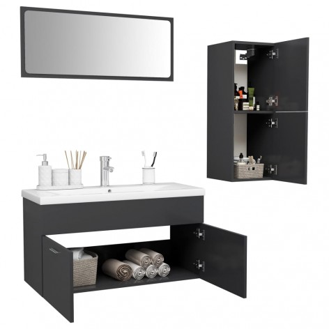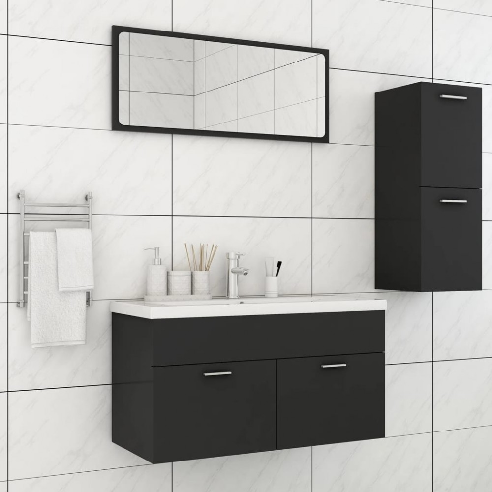Il set di mobili è composto da un mobile sottolavabo, un armadietto alto e uno specchio. L'elegante mobile sottolavabo ha 1 ripiano e la parte superiore è ideale per poggiarvi il lavandino. Il mobile alto ha 2 scomparti e offre ampio spazio per riporre gli oggetti nel bagno. Lo specchio aggiunge un tocco di eleganza all'arredamento. Questo set da bagno è facile da pulire con un panno umido.