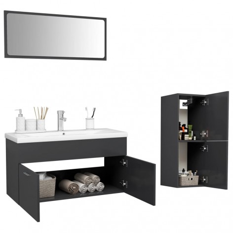 Set Mobili da Bagno Grigio in Truciolato