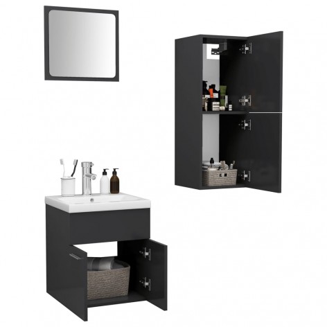 Set Mobili da Bagno Grigio in Truciolato