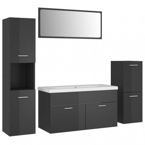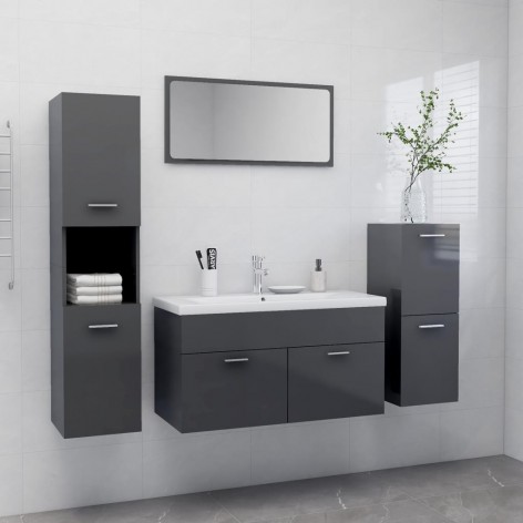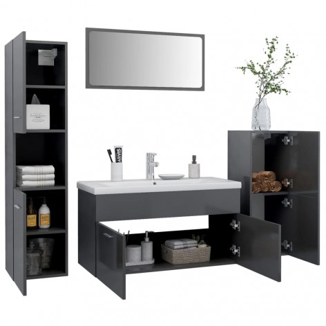 Set Mobili da Bagno Grigio Lucido in Truciolato