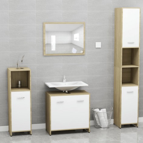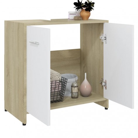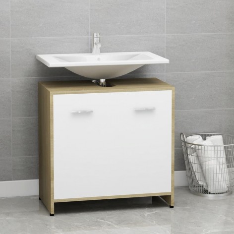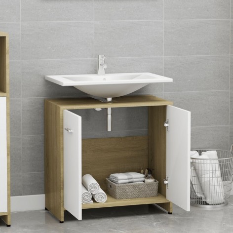 Armadio da Bagno Bianco e Rovere Sonoma 60x33x61 cm Truciolato