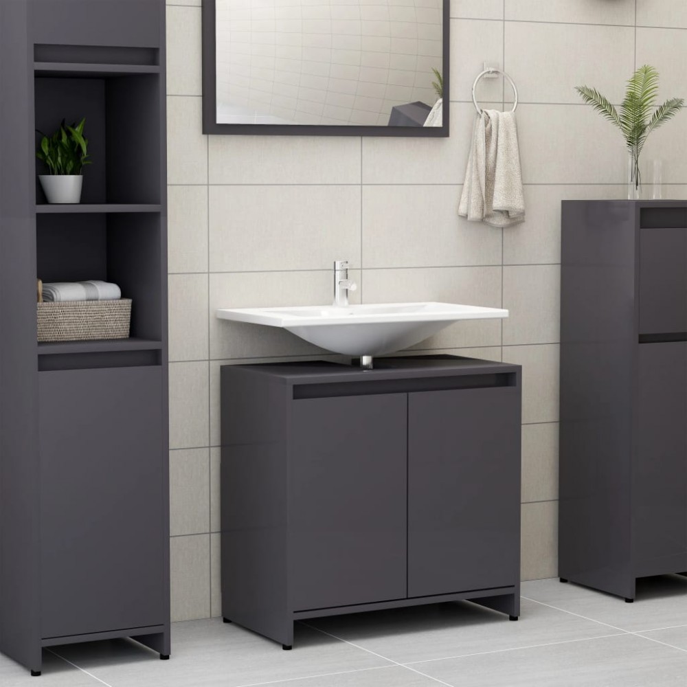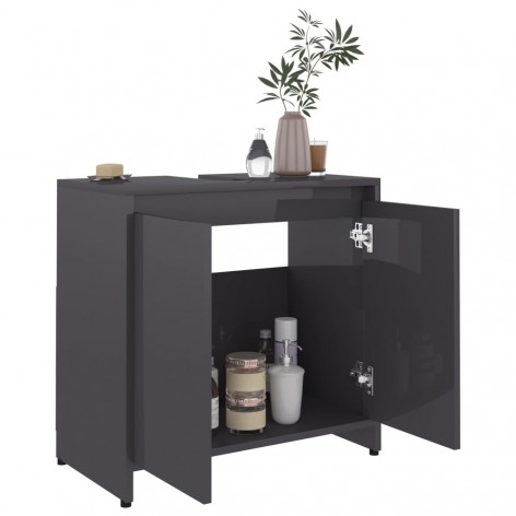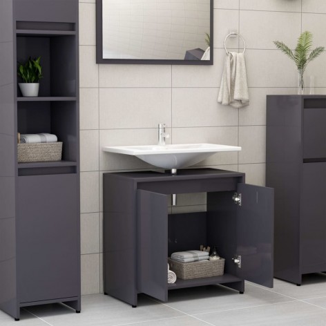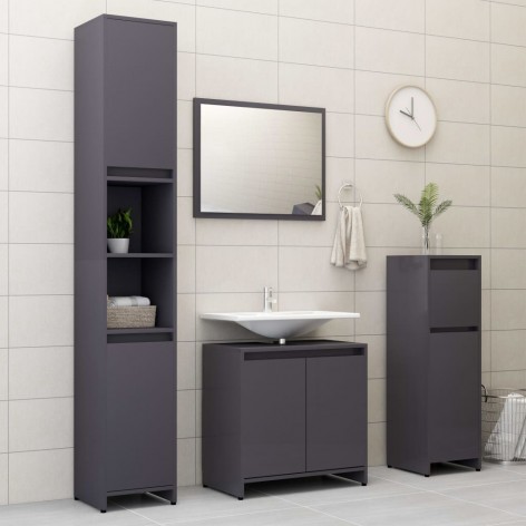 Armadio da Bagno Grigio Lucido 60x33x61 cm in Truciolato