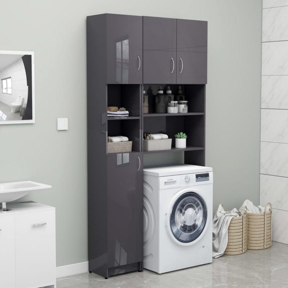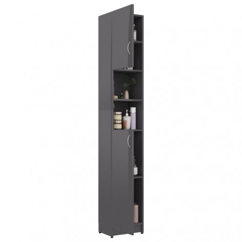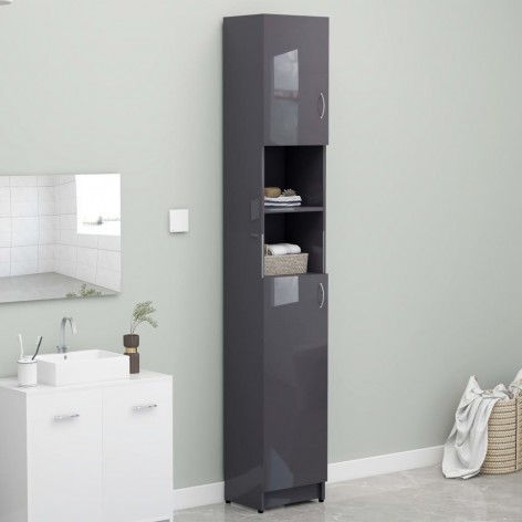 Armadio da Bagno Grigio Lucido 32x25,5x190 cm in Truciolato