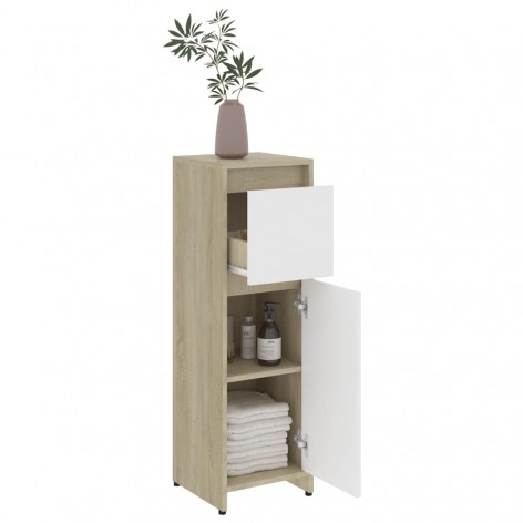 Armadio da Bagno Bianco e Rovere Sonoma 30x30x95 cm Truciolato