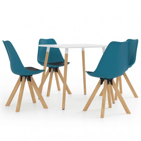Il piano del tavolo è realizzato in MDF premium con PVC, che è facile da pulire. Le sue linee pulite donano un'eleganza distintiva ai vostri pasti. Le solide gambe in legno di faggio aggiungono stabilità e robustezza al tavolo da pranzo. Le sedie inoltre hanno come caratteristica una seduta ergonomica con schienale integrato dall'aspetto curvo, garantendo il massimo comfort di seduta. Il sedile e lo schienale della sedia sono rivestiti in similpelle qualità, morbida al tatto.