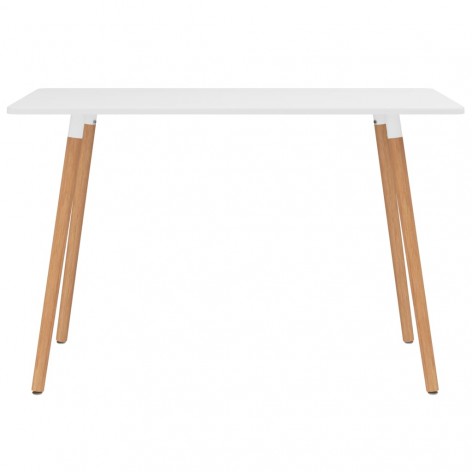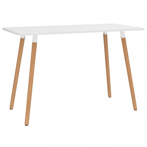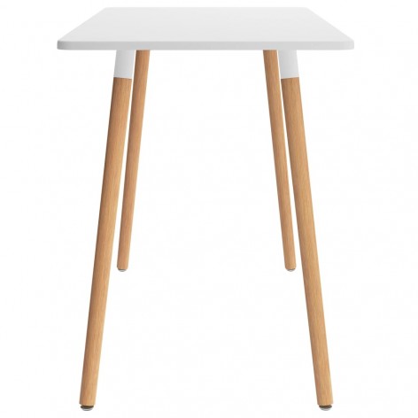 Il piano del tavolo è realizzato in MDF premium con PVC, facile da pulire. Le sue linee pulite donano un'eleganza unica ai vostri pasti. Le solide gambe in legno di faggio aggiungono resistenza e robustezza al tavolo da pranzo. Le sedie sono caratterizzate da una seduta ergonomica con schienale integrato dall'aspetto curvo, garantendo il massimo comfort di seduta. Il sedile e lo schienale della sedia sono rivestiti in similpelle di qualità, morbida al tatto.