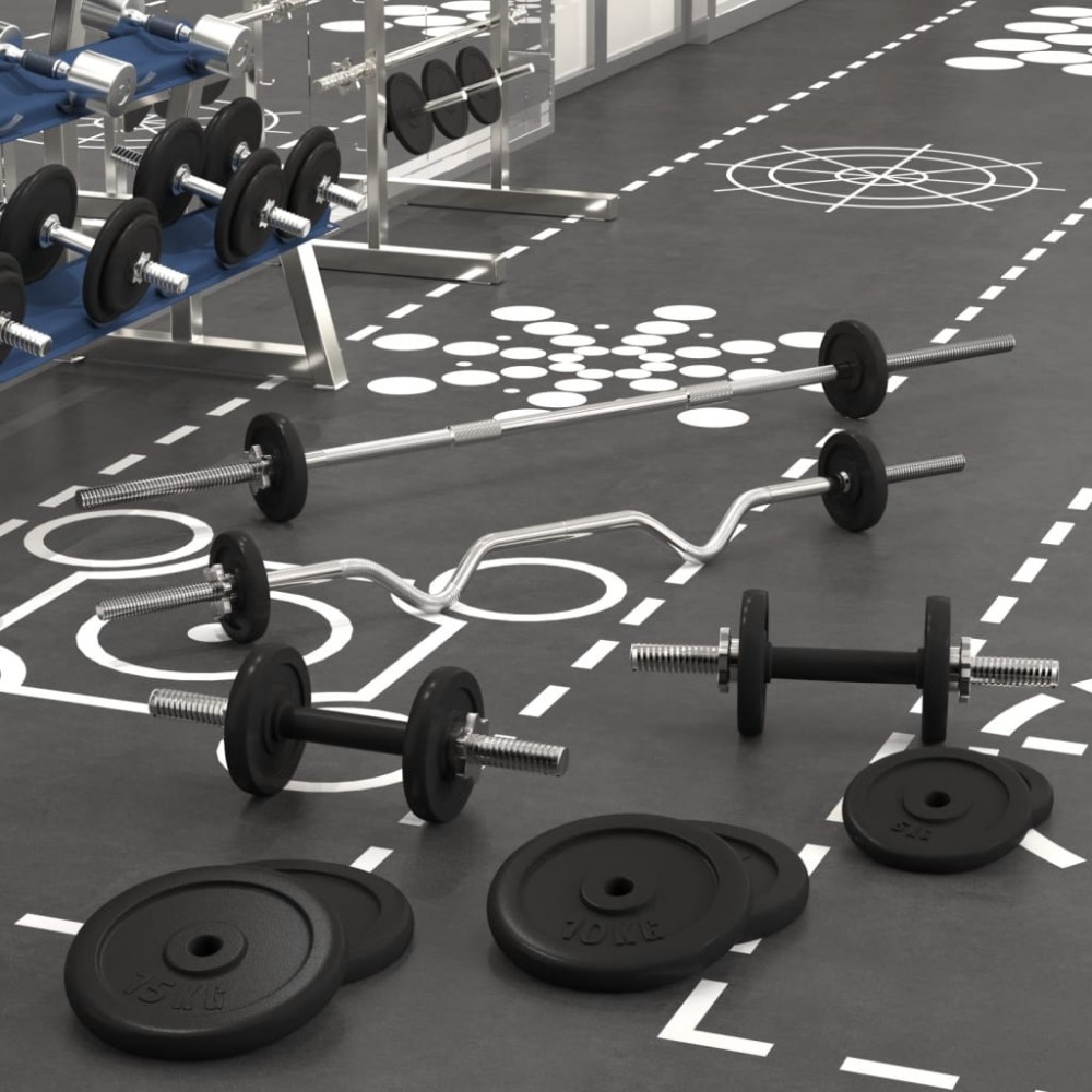 Questo versatile set per bilanciere e manubri con dischi è la scelta perfetta per chi è alla ricerca di diverse opzioni di allenamento.