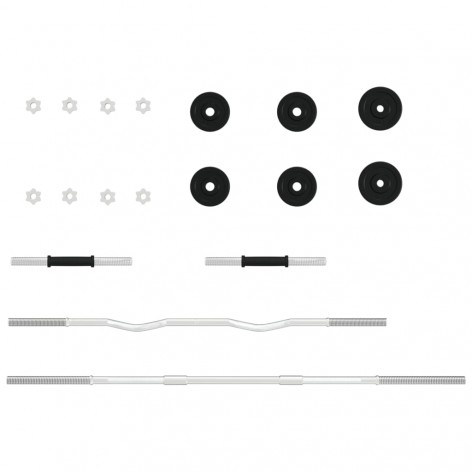 Questo versatile set per bilanciere e manubri è la scelta perfetta per chi è alla ricerca di diverse opzioni di allenamento.