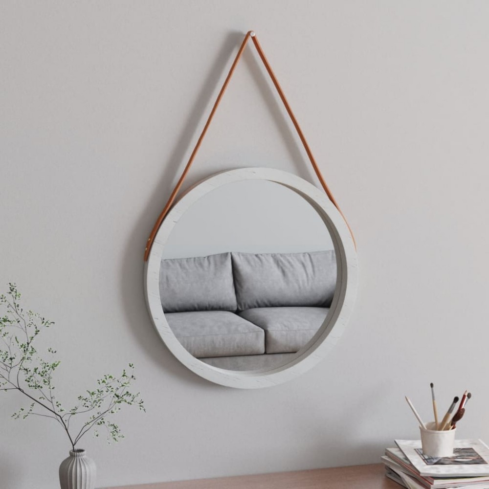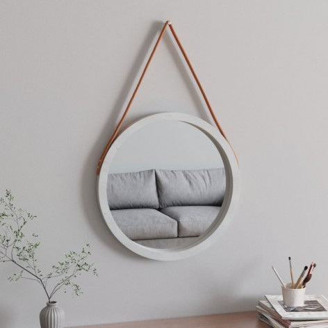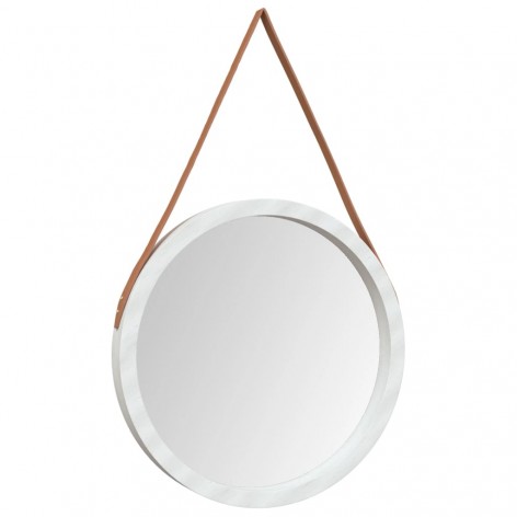 Specchio da Parete con Cinghia Bianco Ø 55 cm