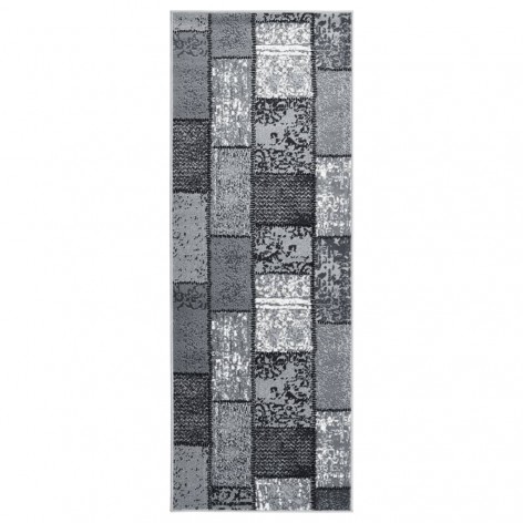 Tappeto Lungo in BCF Grigio con Motivo a Blocchi 100x250 cm