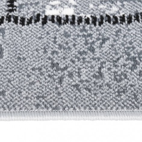 Tappeto Lungo in BCF Grigio con Motivo a Blocchi 80x200 cm