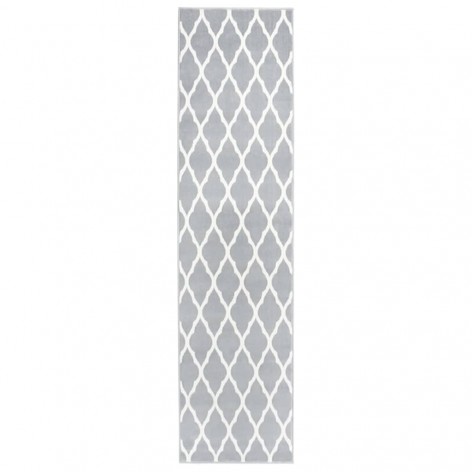 Tappeto Lungo in BCF Bianco e Grigio 100x500 cm