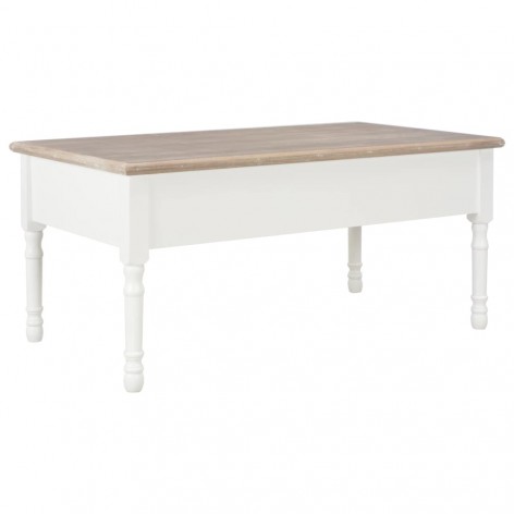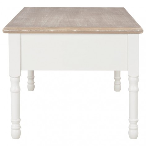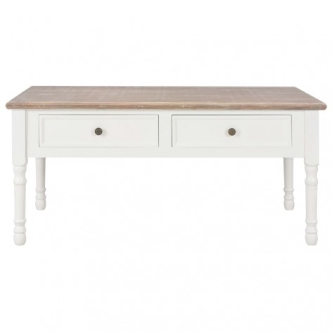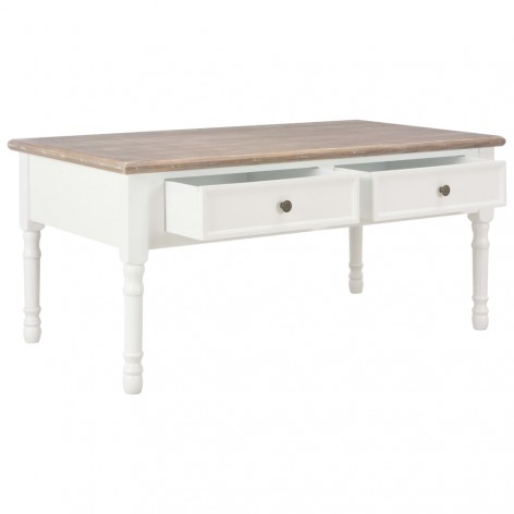 Sia che stiate cercando un tavolino da caffè dove poggiare bevande o cibi, o un tavolino dove riporre oggetti vari, questo tavolo ha esattamente tutto quello che vi occorre. I 2 cassetti aggiungono un tocco artistico alla vostra organizzazione di riviste, libri e altri oggetti, mentre il design contemporaneo con un tocco in stile provincia francese completa al meglio l'arredamento della vostra casa. Realizzato in MDF, legno massello di pino e rivestito in esclusivo legno di paulonia, questo tavolino da caffè è costruito per durare nel tempo.