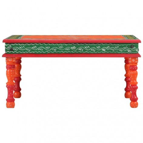 Il tavolino è realizzato a mano in legno massello di mango e MDF, resistente e attraente, e l'artigianato si aggiunge al suo spettacolare stile retrò. Ogni fase del processo viene eseguita con la massima cura, che si tratti di lucidatura, verniciatura e laccatura. Il tavolino è caratterizzato da ampi dettagli decorativi dipinti a mano, che creano un effetto caldo e ricco. Questo tavolino da caffè ha un piano robusto per posizionare bevande, vasi, ciotole di frutta o ornamenti.