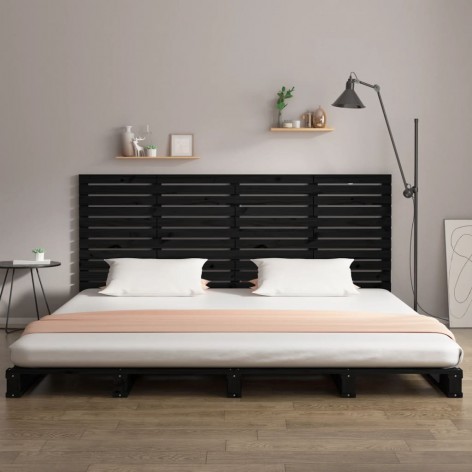 Testiera da Parete Nera 206x3x91,5 cm in Legno Massello di Pino