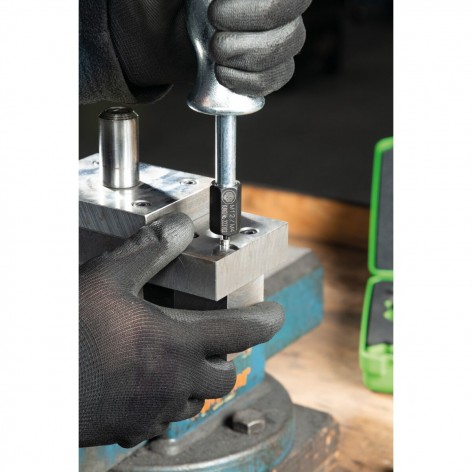 Il set di estrattori KUKKO, prodotto in Germania, è progettato appositamente per l’estrazione precisa e sicura di cuscinetti e componenti filettati come perni, chiavi a piuma o bulloni, risultando indispensabile nei settori industriale, commerciale e nelle officine professionali. Questo kit, noto per l’alta qualità e precisione, include un martello a inerzia da 300 mm e 1 kg (modello KS-22-01-GH), che trasmette la forza d’urto in modo ottimale grazie al design ergonomico che evita danni a pezzi delicati o la necessità di supporti aggiuntivi. Comprende inoltre un completo set di adattatori filettati e dadi di unione di varie misure (M12/15×16G, M12/M10, M12/M7), che facilitano l’estrazione sia di filettature interne che esterne, aumentando la versatilità dell’attrezzatura. Il sistema di martelli scorrevoli garantisce un effetto d’urto controllato che assicura un’estrazione dolce e senza contatto diretto, evitando danni ai componenti e garantendo efficienza nel recupero dei pezzi. Questo set è particolarmente indicato per lavori con superfici di appoggio limitate o delicate, ottimizzando la forza applicata e offrendo una soluzione professionale per smontare elementi montati con precisione. Il set KUKKO rappresenta uno standard elevato negli strumenti per l’estrazione di cuscinetti, offrendo affidabilità, durata e facilità d’uso in applicazioni di manutenzione e riparazione impegnative.