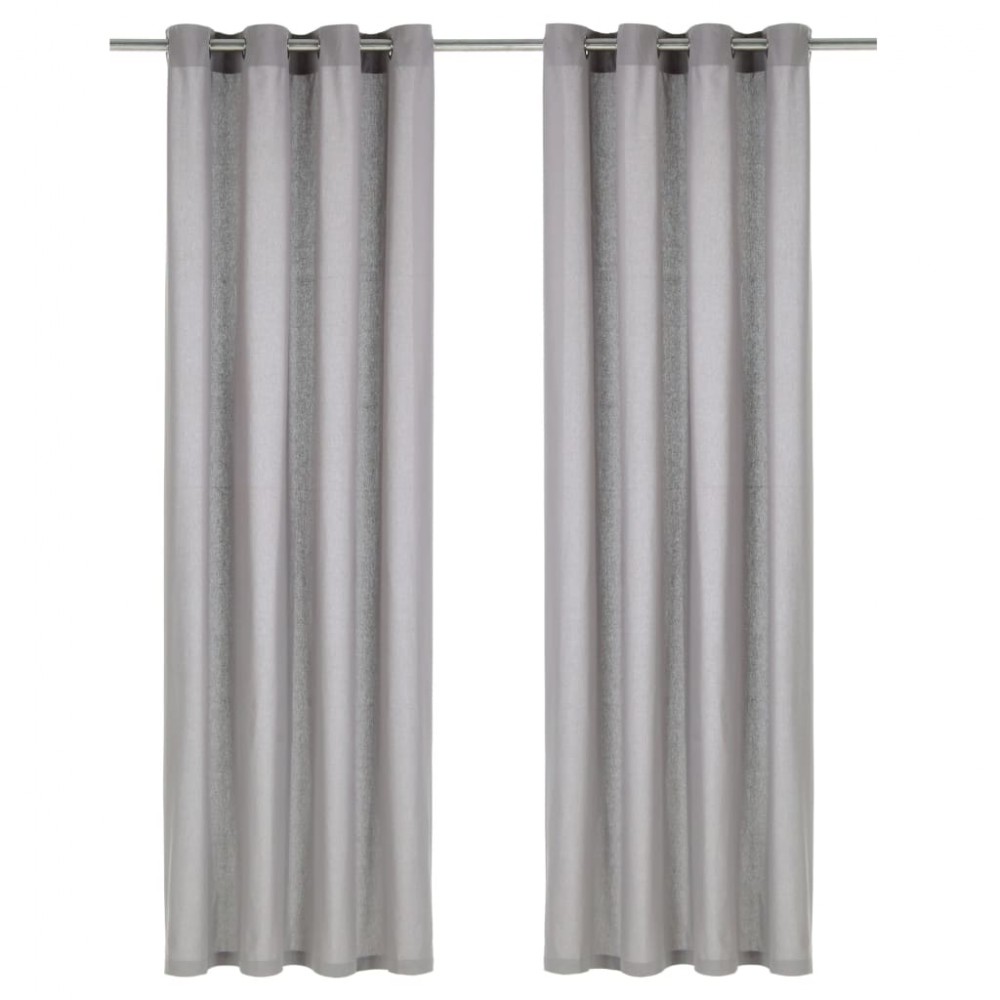Tende con Anelli in Metallo 2 pz in Cotone 140x245 cm Grigie