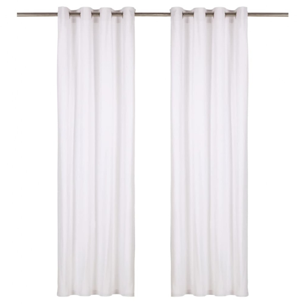 Tende con Anelli in Metallo 2 pz in Cotone 140x225 cm Bianche