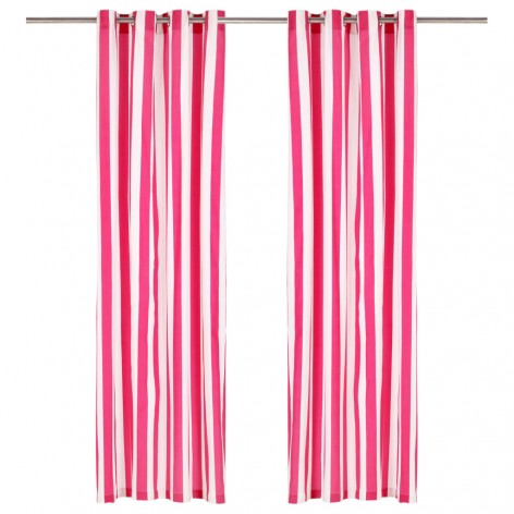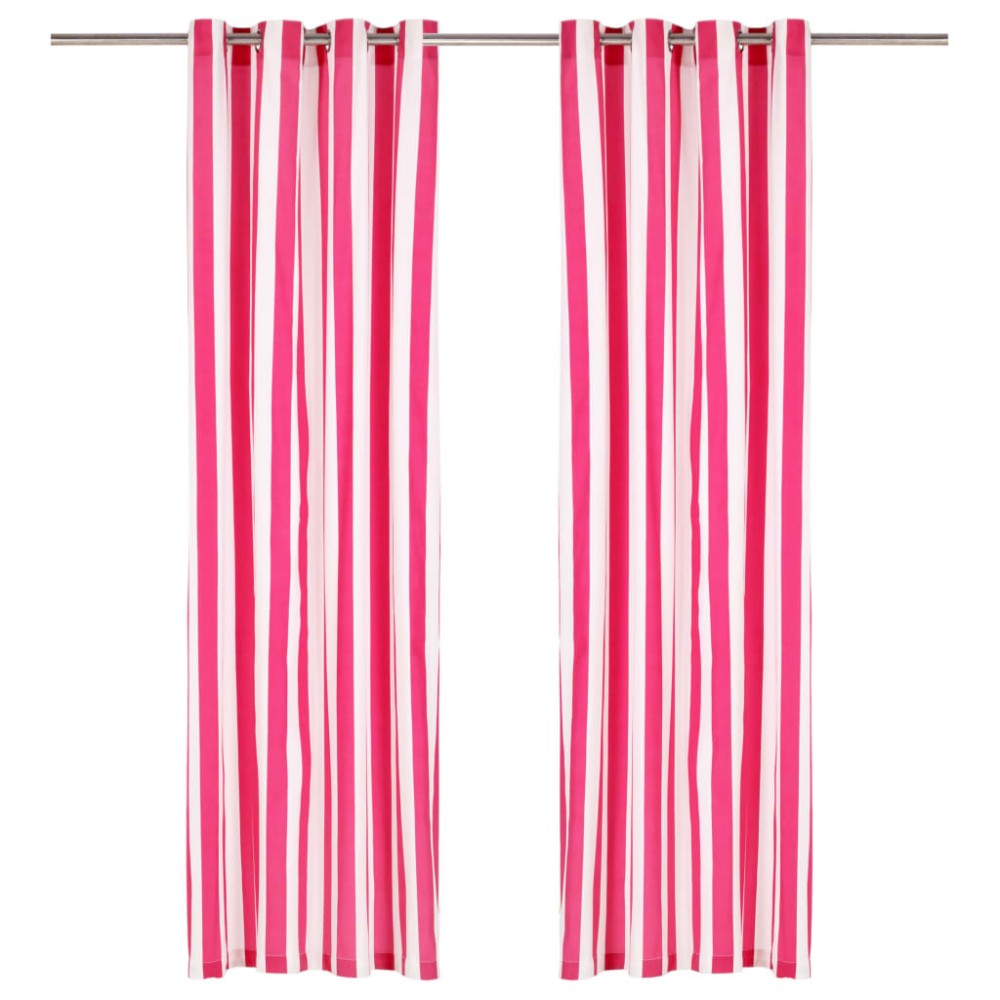 Tende e Anelli in Metallo 2 pz Tessuto 140x175cm Rosa a Strisce