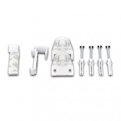 La consegna include 1 guida in plastica in PVC da 40 cm, 1 guida in alluminio da 40 cm, tenda in poliestere 100% con rivestimento riflettente color argento, 2 staffe, 2 ganci, 1 catena in plastica, 4 viti e 4 prese a muro.
