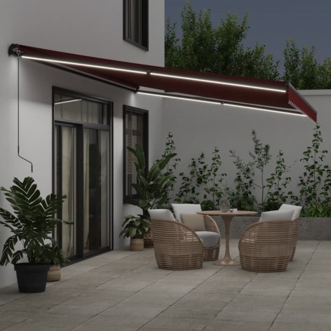 Tenda da Sole Retrattile Manuale con LED Bordò 600x300 cm